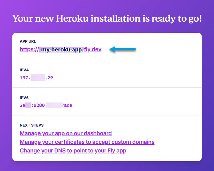 You should now be able to see or be at your Fly_io Dashboard and be presented with your Hostname