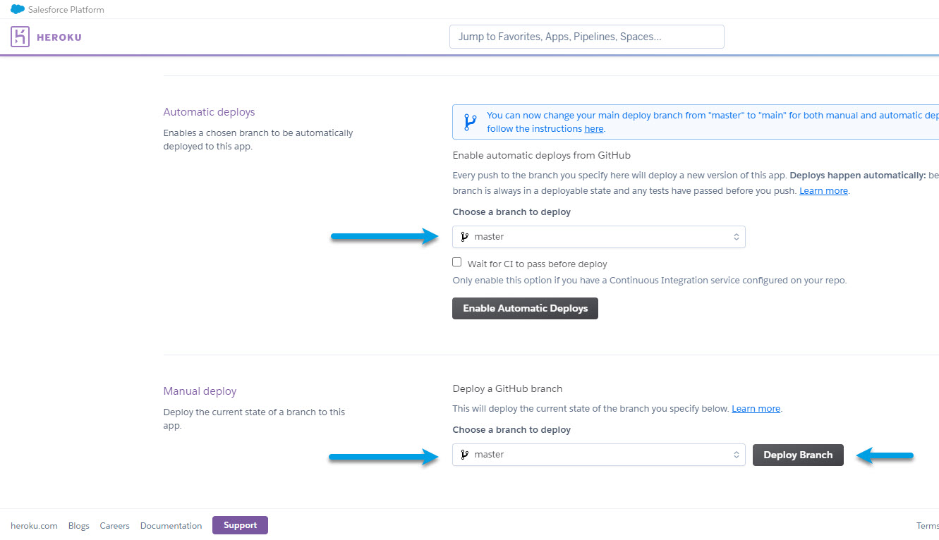| If you’re on Heroku and have Automatic Deploys enabled, you’re done! If you don’t have Automatic Deploys on yet, or aren’t sure, run through these steps below! |