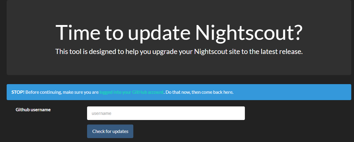 Now-- Click Here -- to open the update tool or image below!for Nightscout in a new tab from Github. Make sure both are open