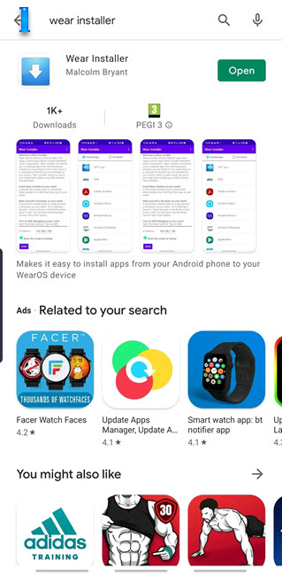 3. (1:56) Now we need to install wear installer on your mobile phone,as well as on your watch, you do this on your watch by going to the Play Store and do a search for wear installer and install it on your Mobiles Wear installer.