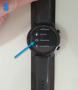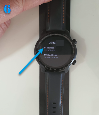 4. (2:46) To find your ip address on your watch scroll down on watch face to setting icon/ connectivity/ wifi and tap on your connected wifi network which will then show you your ip address