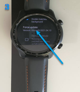 7. (4:23) Update xdrip on watch - Now go to xDrip Prefs on the Watch, press button twice and go to xdrip Pref and click on it then scroll down till you see Force Update - and tap it.