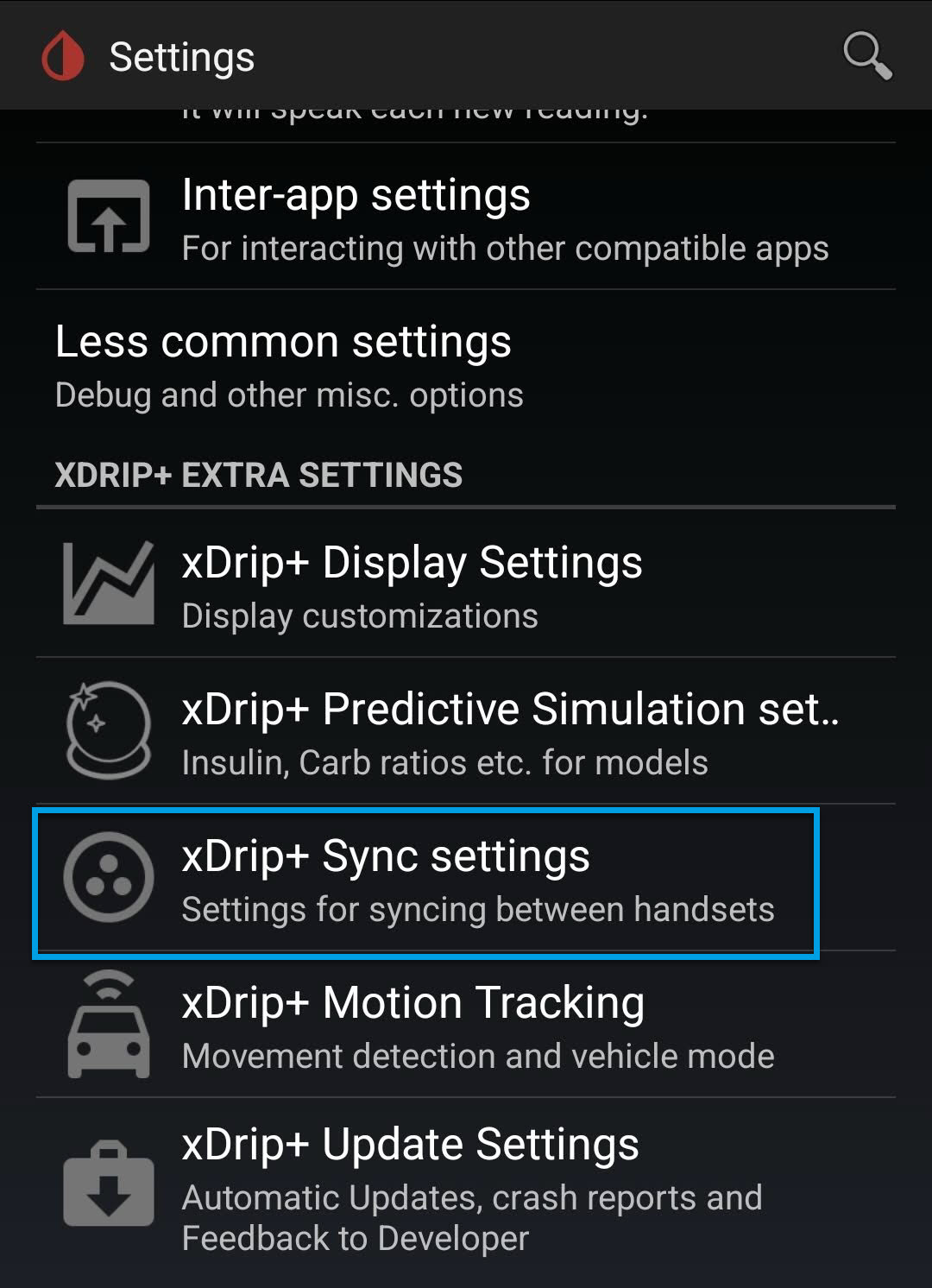b. then xdrip+ sync settings