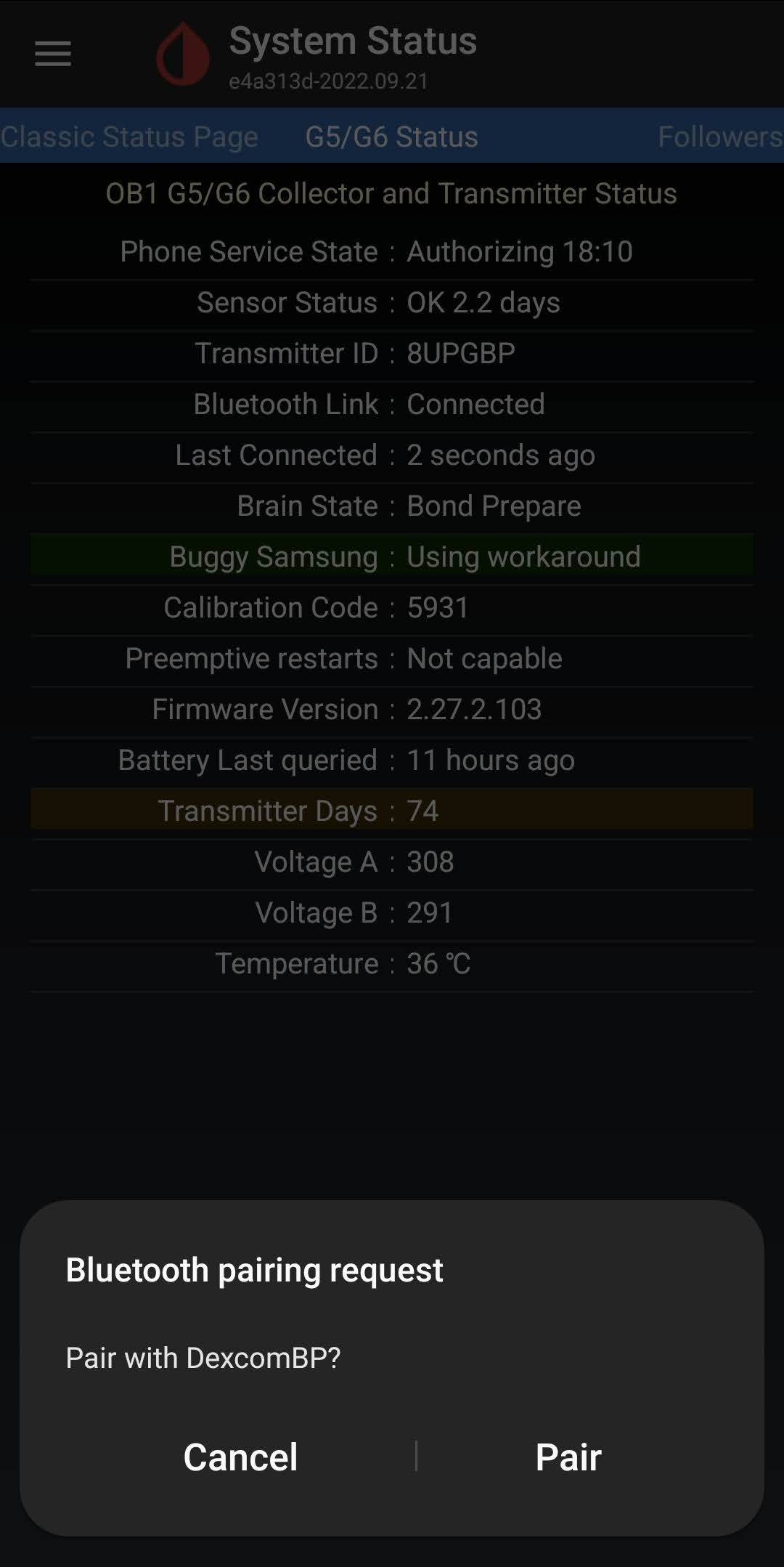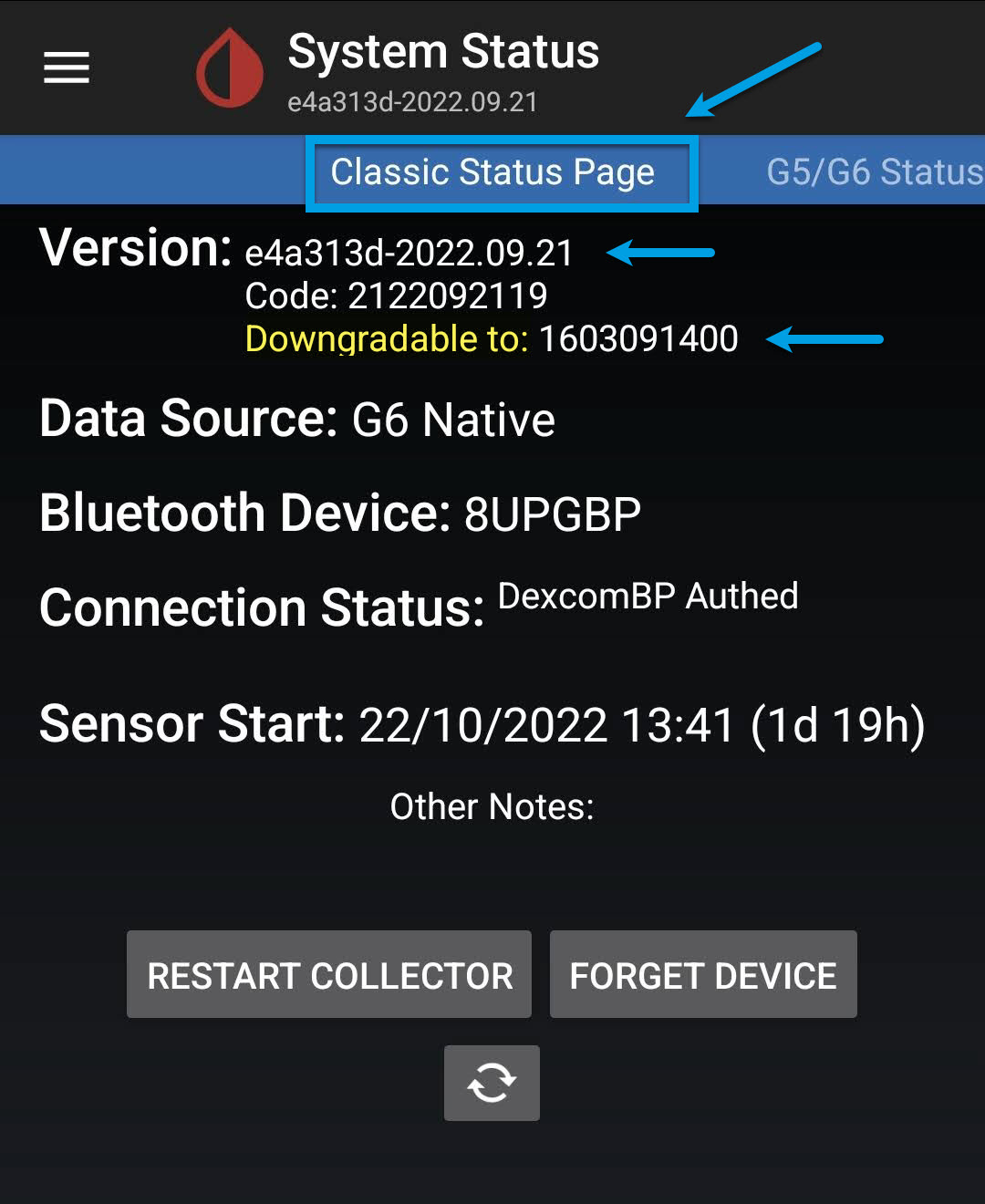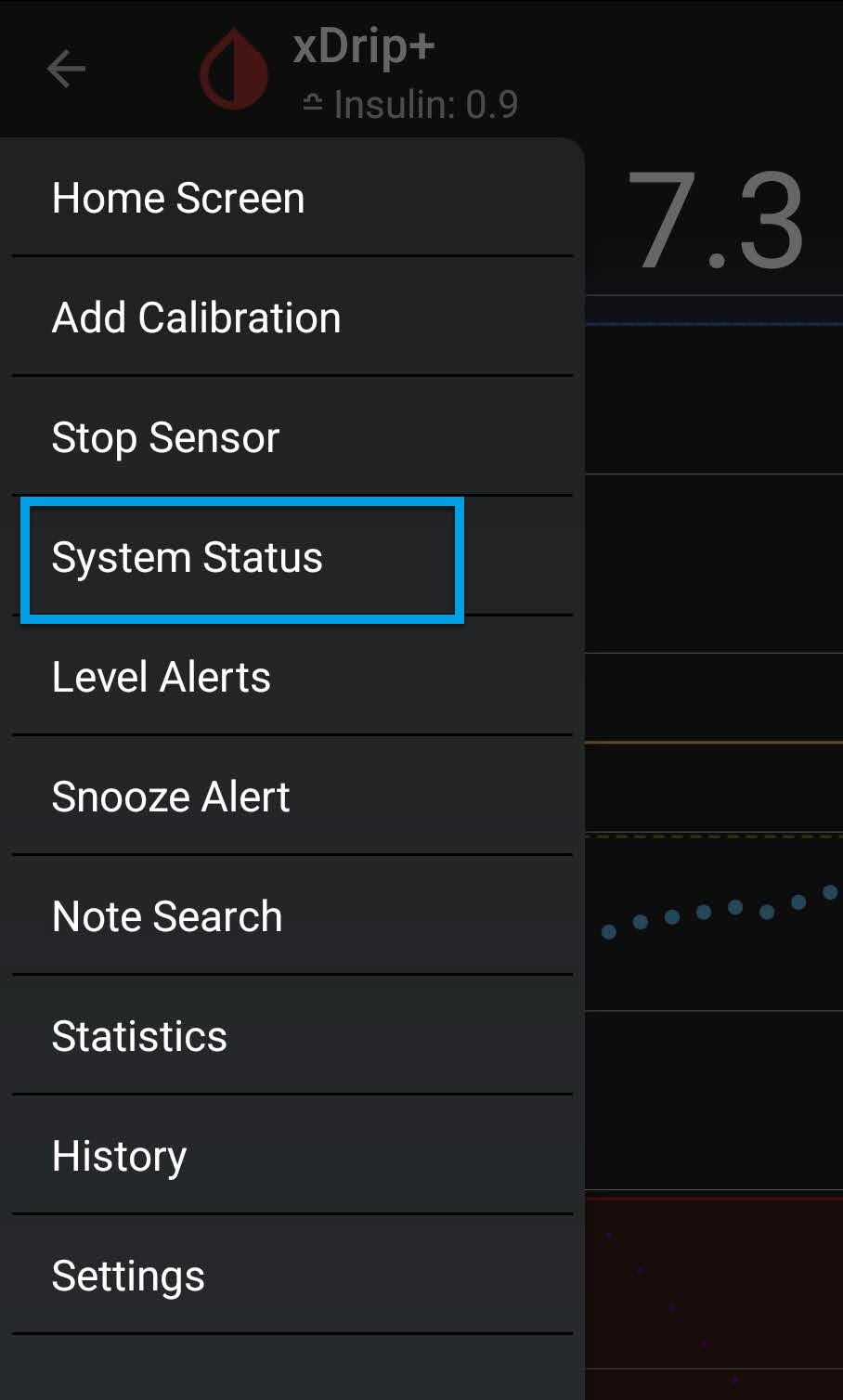 If you are using xDrip as the collector from Dexcom G5, G6 or Dexcom One, go to the G5/G6 status page with the “G5/G6 Status” heading.