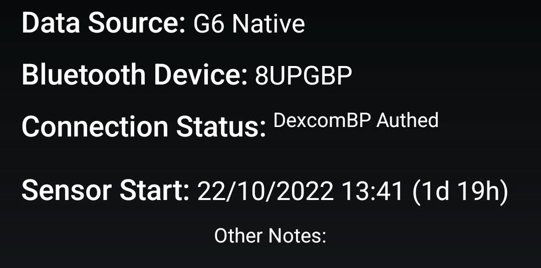 Also, on this page you will find the Data Source: Type (one you selected to receive your BG values in my case a Dexcom G6)